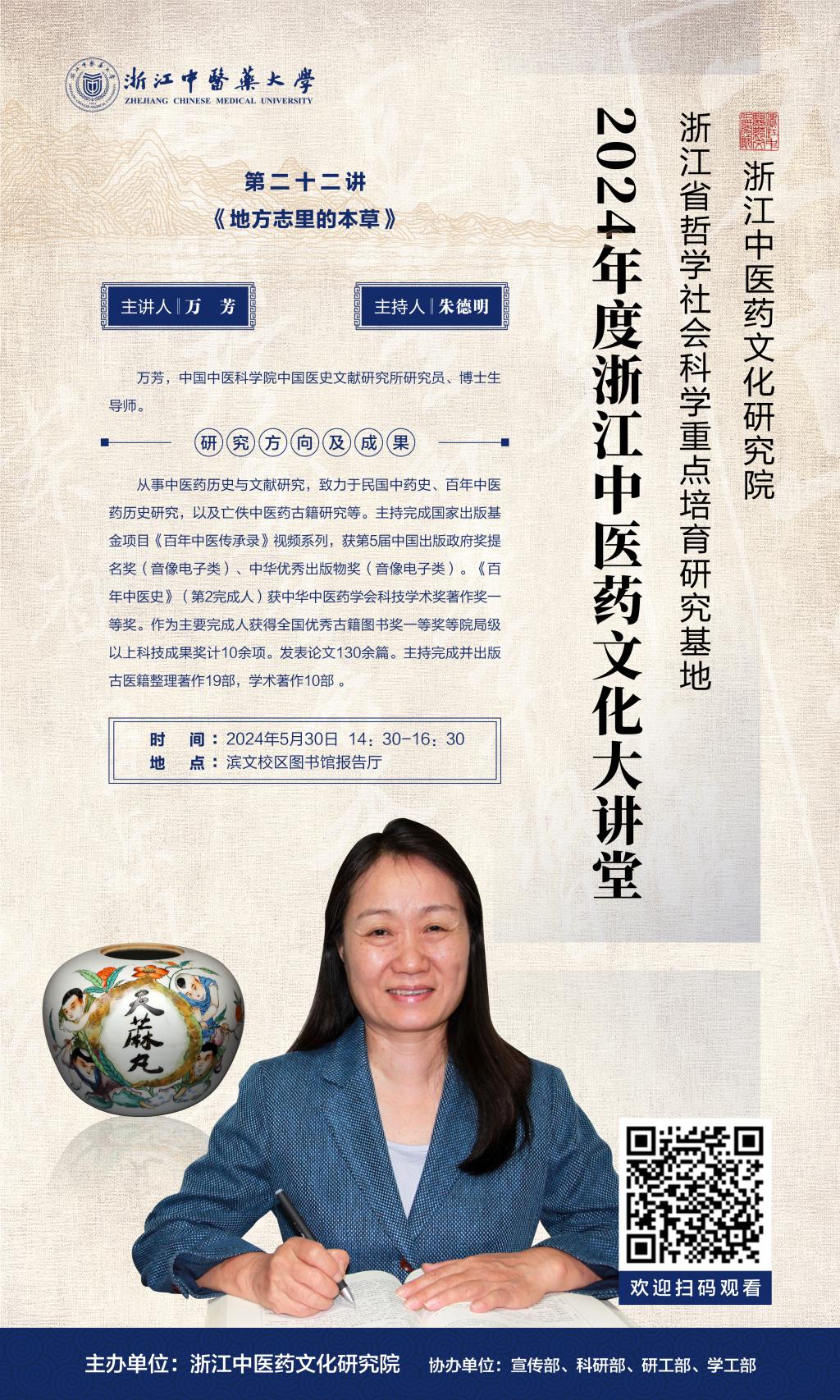 浙江中医药文化大讲堂第二十二讲:万芳研究员——地方志里的本草